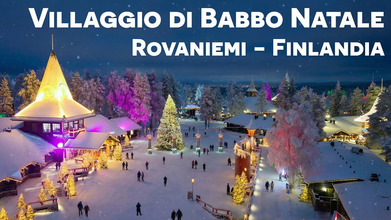 Scopri da una veduta aerea, il suggestivo Villaggio di Babbo Natale, situato sul Circolo Polare Artico a Rovaniemi in Finlandia. Babbo Natale vive nella Casa di Babbo Natale Santa Claus.